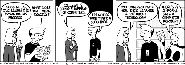 Recently the number of appearances of libraries and librarians in comic strips seems to be on the rise. True to fashion I take all the credit for this. The latest is in one of my favorite webcomics, Sinfest.