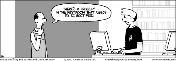 Saturday is Gene's birthday, and per our agreement I drew a bathroom joke. My side of the agreement is that on my birthday, in a month, he draws the strip. I'm going to make it something hard. With perspective. And crowds. And flamenco dancers.