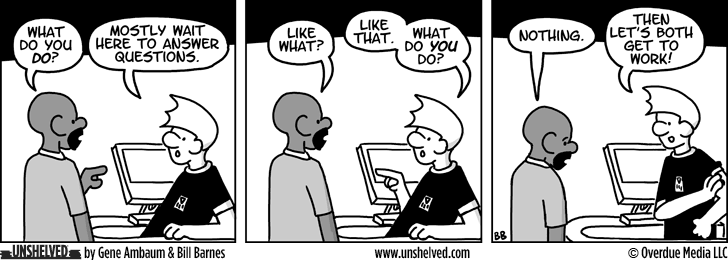 Unshelved is brought to you this week, in part, by the fine folks at Equinox Software, the Open Source Experts. Make sure you stop by their booth #1041 at Midwinter. Tell them we sent you and you’ll be entered to win a drawing for free Unshelved books and merchandise every day.