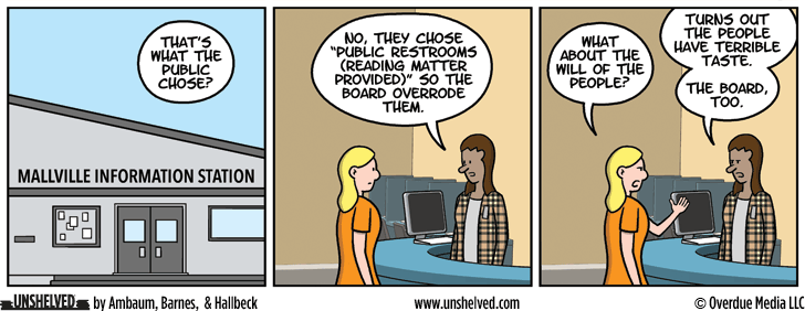 Last week, when we were at TLA, we had the pleasure of chatting with David Lubar when he stopped by the Unshelved booth. It was clear from talking to him that he is incredibly proud of his new YA novel, Character, Driven. And reviewers are loving it too! It has already received starred reviews from Booklist, Kirkus Reviews, and Publisher’s Weekly. Please visit Tor Teen —publisher of Character, Driven and this week’s Unshelved sponsor— to read the beginning of this powerful coming-of-age novel and to learn more about it!