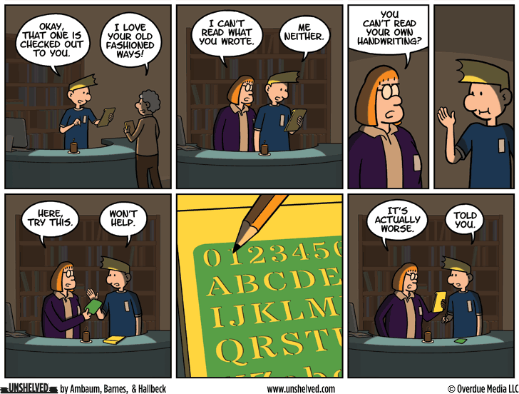 If you are attending the PLA Conference this week, be sure to stop by and visit Grey House — another of our favorite sponsors! They will be giving away “Please Interrupt Me” buttons and a special Unshelved poster. Visit them to discover the latest titles from Grey House, Salem Press, and H.W. Wilson, and receive a 20% conference discount. Grey House is at PLA Booth #1653 through Friday!