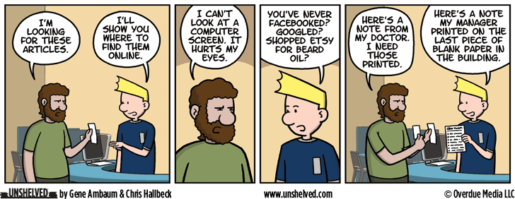 © 2002-2016 Overdue Media LLC, all rights reserved. "Unshelved" is a registered trademark of Overdue Media LLC.